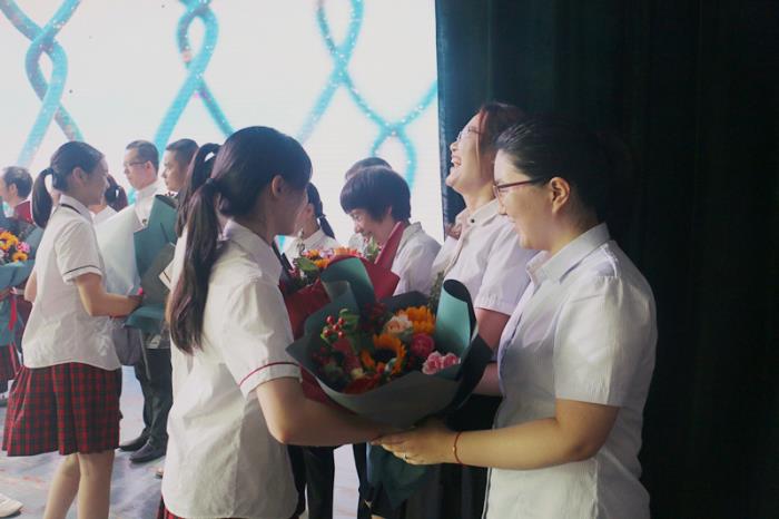在这特别的时刻,毕业生代表向每位老师送上一束鲜花,表达全体毕业生真诚的敬意以及最真挚的感谢。