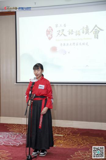 陈沂静同学以其出色的中英朗诵表现、优雅的葫芦丝表演加上从容淡定且稳健的台风,赢得了评委的一致好评。