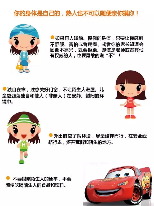 危险都是潜在的,预防是最有力的武器。所以一定要把功夫花在平时,为孩子布好全方位的安全防护网,提高孩子的隐私意识、警惕性和自我防护能力。