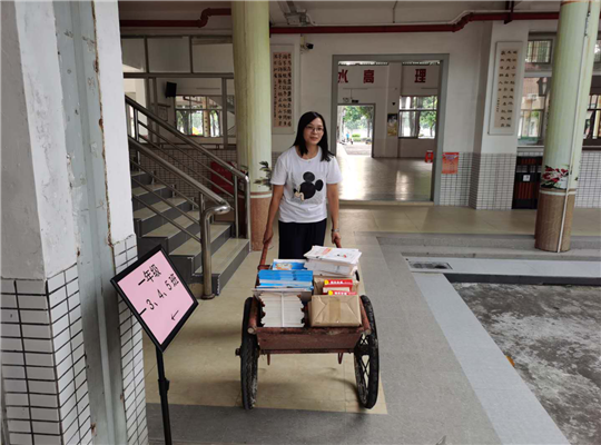 身材纤细的老师在搬作业时也是毫不逊色