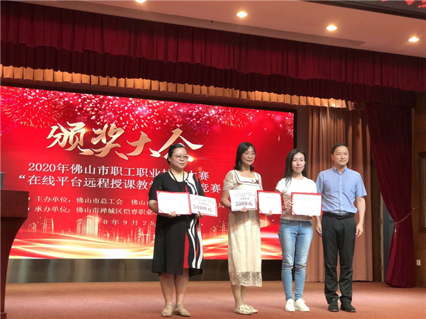 2020年4月份,在疫情背景下,佛山市总工会、佛山市人力资源和社会保障局联合佛山市教育局举办了“2020年佛山市职业职工‘在线平台远程授课教学’职业技能竞赛”,陈村职校教师积极参赛,其中吴劲茵、黄燕娜、冯坤和陈培英老师在时间短、形式新、内容多的强大压力下,精心备赛,最终从200多名参赛选手中脱颖而出,进入到在线直播的决赛,并最终斩获了第2、5、8和13名的傲人成绩!