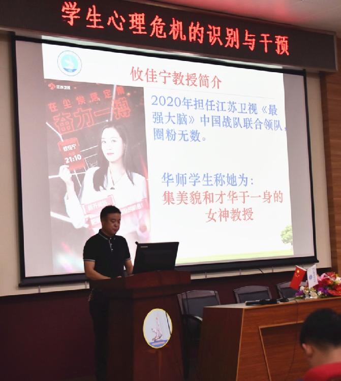 攸教授以《最强大脑》节目为切入点,拉近与教师们的距离,并结合新冠疫情肆虐与当今国际形势提出了“极限施压”的主题,激励老师们:“星空体育每个人都有战胜压力的能力”,“自杀是可以预防的”。攸教授紧密联系社会时事与教育实际给出“自杀可以预防”的3个理由: