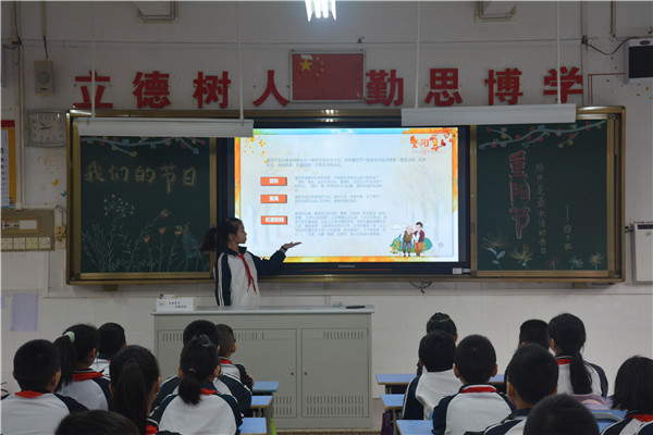 10月19日上午,各班还开展了“星空体育的节日?重阳”主题班会,向队员们介绍中华传统节日――重阳节的来历、习俗等,并开展了主题为“情暖金秋,爱在重阳”的重阳诵读活动。主题班会上,学生们不仅交流了对重阳节的了解,知道了重阳节的由来,别名和各地的风俗,还诵读了一些有关重阳节的诗句,让中华优秀传统文化教育在校园里持续有效地进行。