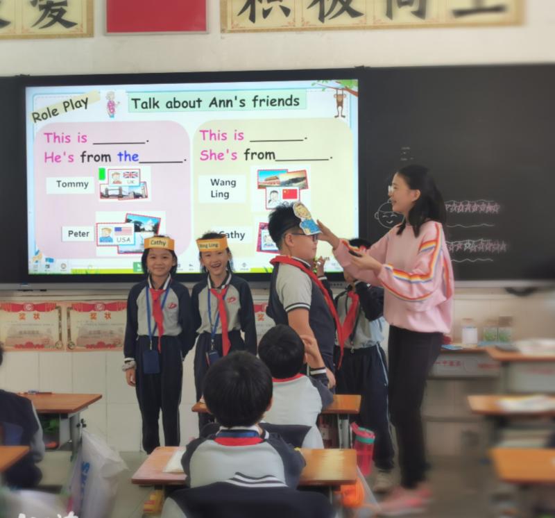 廖晓彤老师通过情景导入的方式,使学生在具体的情景中理解英语对话的大意,掌握正确的语音语调进行朗读对话。