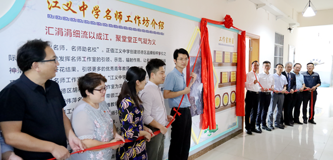 近年来,江义中学上下齐心提升学校教育教学质量,致力于将学校打造成高标准、高品质的品牌标杆学校。学校的发展离不开教师队伍的专业成长,建设高质量的教师队伍,不仅是深化教育改革的需要,更是学校发展的源头活水。10月28日,江义中学又推出了促进学校教育教学工作高质量发展的一项积极举措:顺德区胡和秋名校长工作室挂牌、江义中学名师工作坊启动。