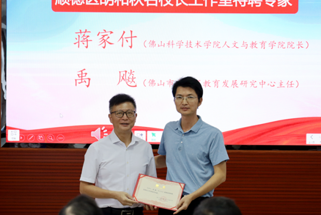 胡和秋名校长工作室聘请佛山科学技术学院人文与教育学院蒋家付院长、佛山市南海区教育发展研究中心禹飚主任为指导专家。