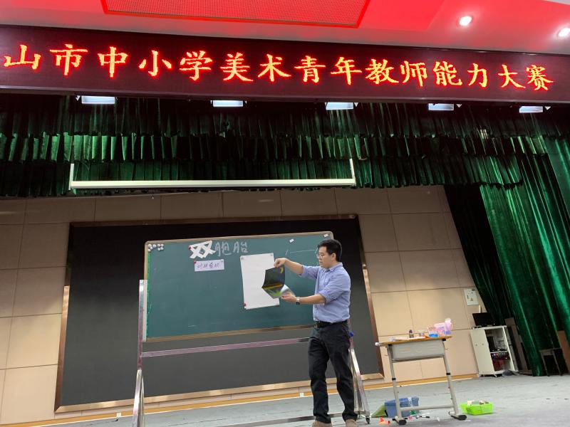 本次比赛分两天进行。在第一天的比赛中,主要考察美术教师的专业技术素养。比赛分上下午两场分别进行绘画创作和纸立体造型设计比赛。在比赛中,李一飞老师不急不躁,努力发挥出自己的最佳水平,无论是绘画还是纸立体手工都得到了比赛评委的一致称赞。