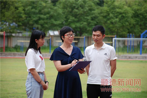龙山中学副校长刘娴兴(中)在指导青年教师
