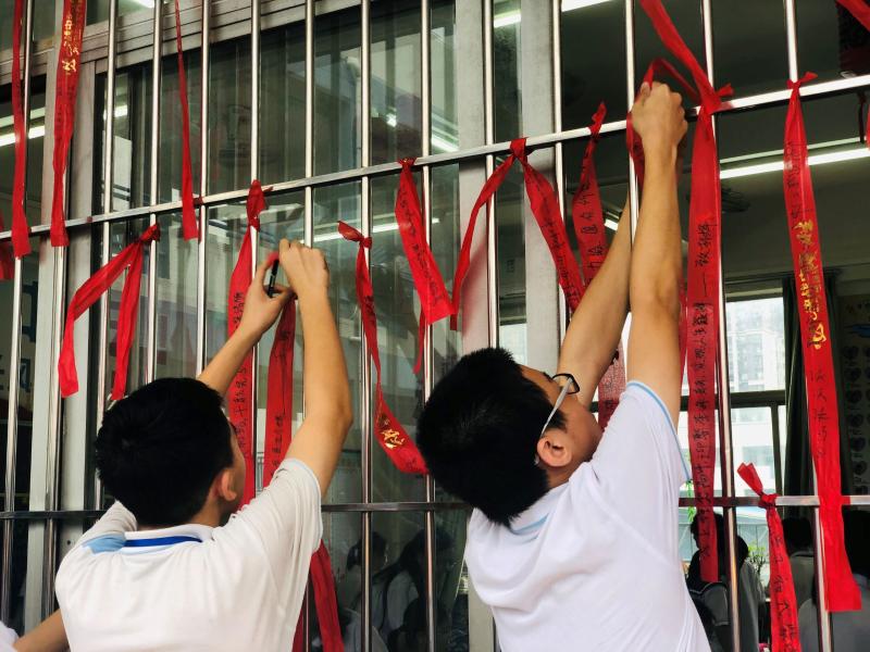 君中是一个很有爱的大家庭,奋斗的路上,星空体育从来都不会寂寞。同学们在红丝带上写上对自己最想鼓励的一位同学的祝福并亲手送给对方,收到祝福的同学把红丝带系到走廊窗户上。慢慢地,初三级的走廊就变成红色的海洋,微风不时吹过,撩动的是少年的心……放眼望去,还发现年级走廊的移动黑板展示着2019届君兰中学卓越班送给2020届君兰初三学子的祝福――《奔涌吧,后浪!》!