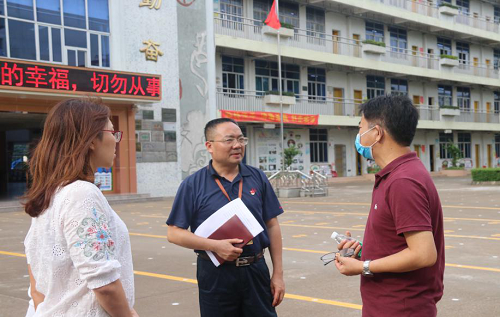 2020年7月9日下午,伦教街道教育局局长梁 滔和伦教街道教育局常务副局长张兆强莅临北海小学开展安全工作检查,了解学校情况以及听取学校意见与建议。北海小学全体校级领导参加了工作汇报会并陪同走访校园。