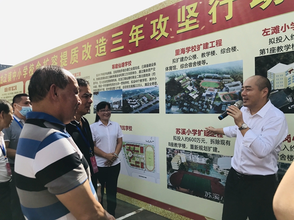 龙江镇第十七届人大代表和市、区人大代表、区政协委员对龙江坦田小学扩建工程项目的开展情况进行了视察
