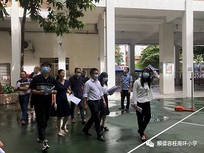 2020年8月13日下午,容桂育美教育集团南环小学迎接容桂街道创建全国文明城市办公室成员督导检查。办公室成员组由容桂街道领导街道办事处欧胜军主任、容桂街道党委刘英华副书记、容桂街道创建办相关人员以及来自街道经科局、街道卫计局、街道教育局、容桂环卫城管分局、容桂市监分局分管创文工作的副职干部组成。容桂南环小学行政领导陪同督导组进行了校园视察。