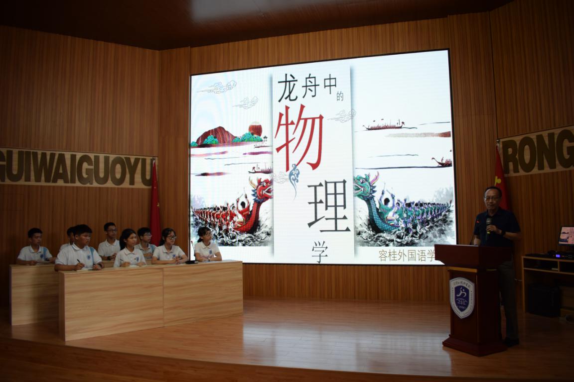 来自容桂外国语学校的陈铭瑞正在作《龙舟中的物理学》的开题报告。