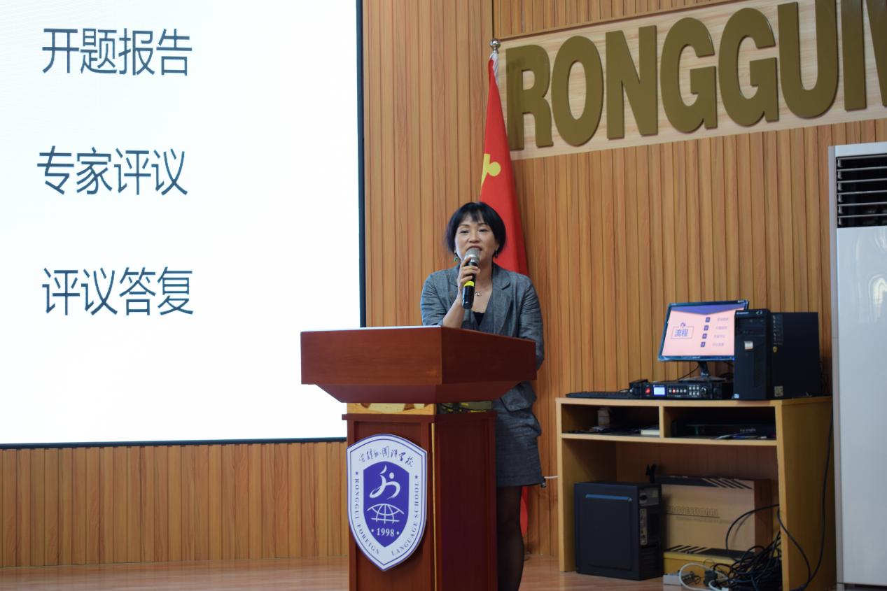 随后,分别来自容桂外国语学校、容桂文华初级中学和容里中学的课题主持人从课题选择的背景和意义、研究问题与方向、研究方法、成员分工、研究方案及过程、课题可能遇到的困难及解决方法和预期成果等方面进行了详细的报告。